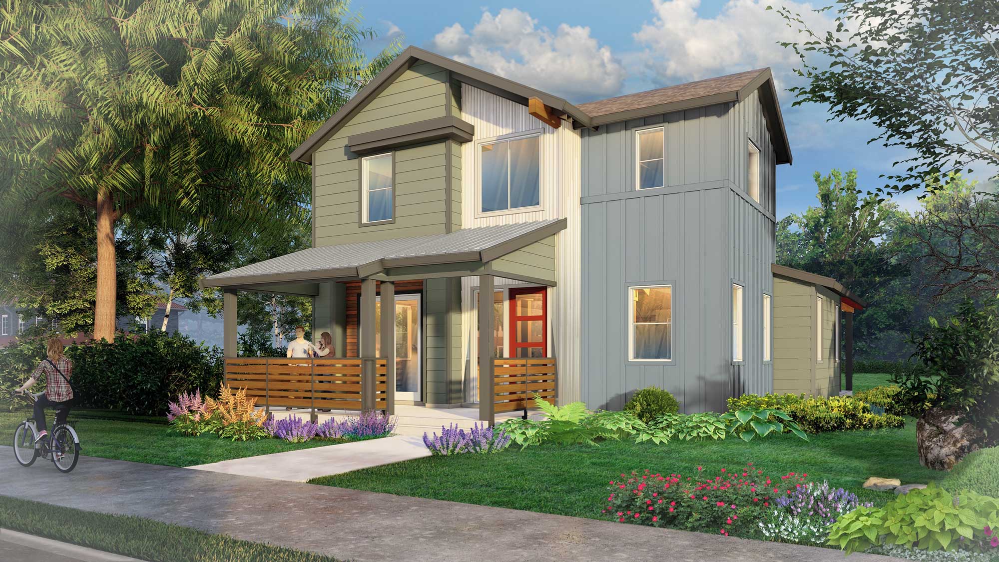 The concept home is designed for a hypothetical older Millennial family where one parent works from home and the other works outside the home. The home is a 2,600-square-foot, two-story home with 4 bedrooms and 3.5 baths, and sits on a 45-foot alley-loaded lot. With America at Home Study findings top of mind, design considerations and key decisions for the concept home will include separate homeowner and guest entryways, two dedicated office spaces and additional flex spaces, a guest suite with outdoor access, a larger secondary bathroom, multiple outdoor spaces, better storage and more.